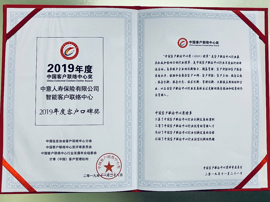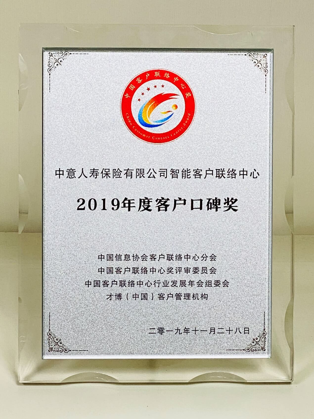 【新聞】中意人壽智能客戶聯(lián)絡(luò)中心榮獲“2019年度客戶口碑獎(jiǎng)”