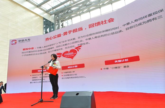 鴻基金秘書長張雁涵講到中意人壽作為一家有社會責任感的公司,從2002年成立以來一直關注公益事業(yè),始終倡導對"人"和"生命"的關愛,在為社會提供保險保障的同時,同樣重視保險業(yè)所蘊含的社會責任和關愛精神,堅持以關愛之心回饋社會。