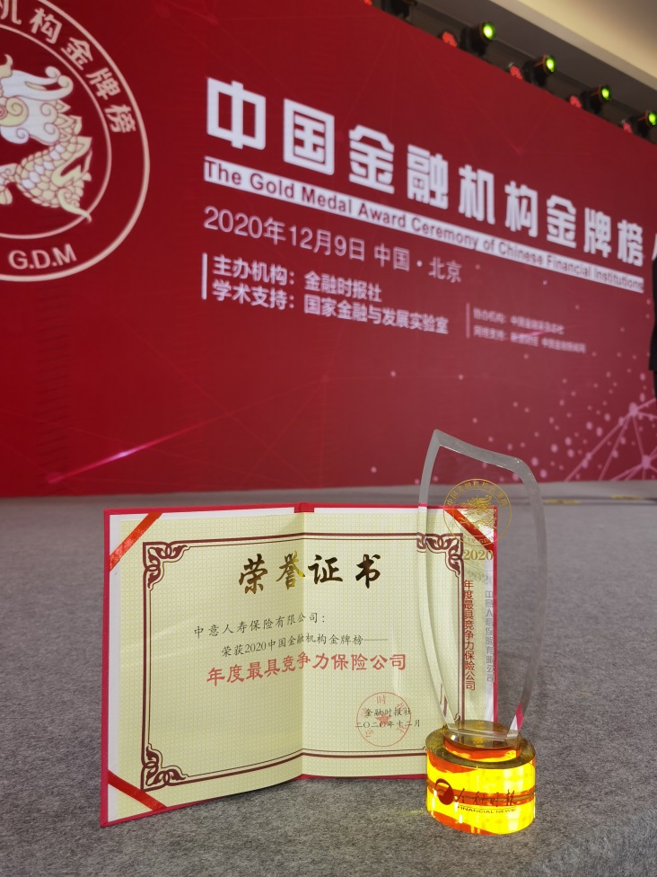 中意人壽獲評(píng)2020年中國(guó)金融機(jī)構(gòu)金牌榜•金龍獎(jiǎng)“年度最具競(jìng)爭(zhēng)力保險(xiǎn)公司”,體現(xiàn)了金融界權(quán)威專(zhuān)家、媒體及社會(huì)各界對(duì)中意人壽未來(lái)發(fā)展的充分肯定。